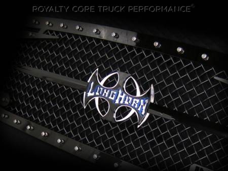 Royalty Core's proprietary corrosion resistant stainless technology creates the most durable grille on the planet. It's engineered to exploit the cleanest installation possible for your specific truck model. This Royalty Core grille is customized to best match your truck with military grade strength you can count on such as a 12 gauge stainless steel construction, optimal mounting brackets, CNC precision machined brackets, frame, and logos, hand fabricated, all gloss surfaces are buffed to a deep smooth mirrored finish, triple chrome plated T304 stainless studs around frame with star flange design, stainless super woven mesh, and absolutely no plastic. Royalty Core offers the industry's largest customized line of grilles and logos available.