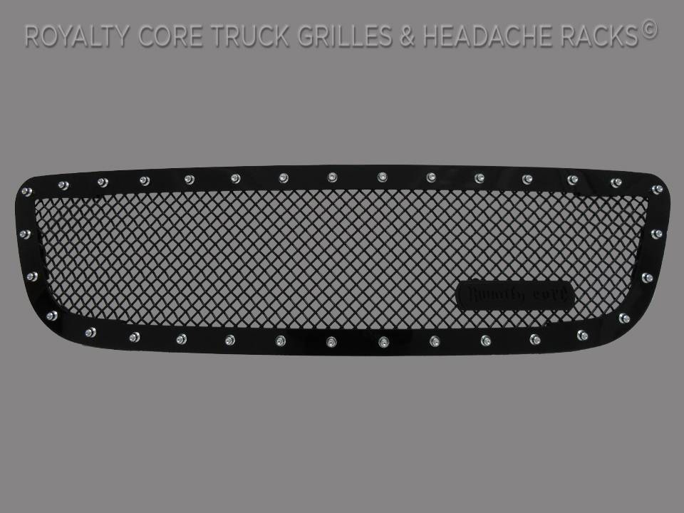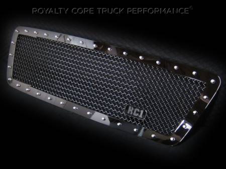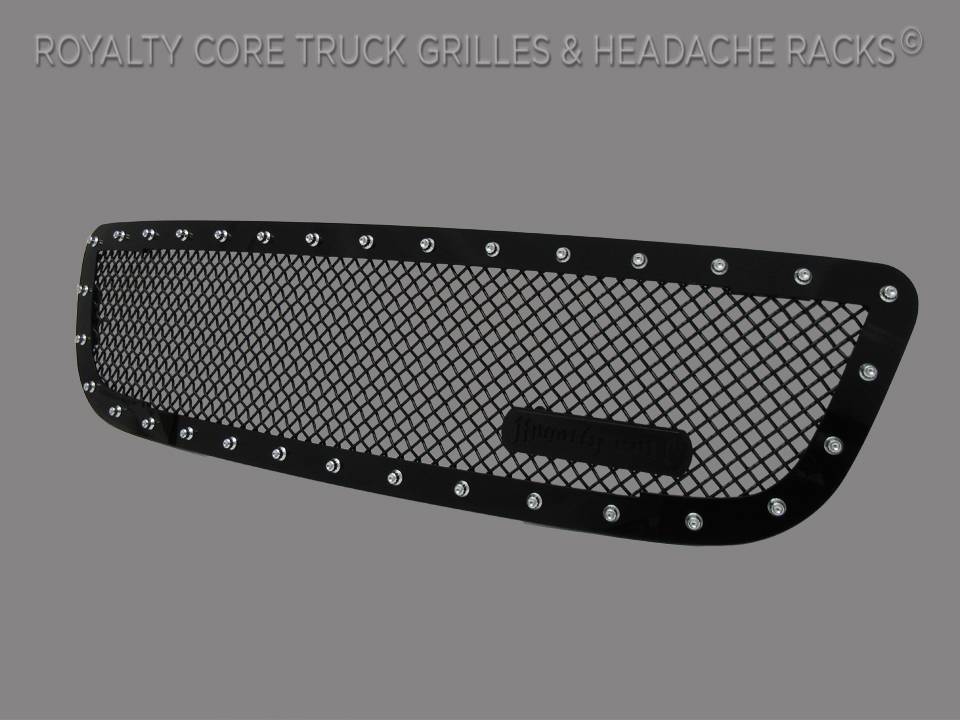 Royalty Core's proprietary corrosion resistant stainless technology creates the most durable grille on the planet. It's engineered to exploit the cleanest installation possible for your specific truck model. This Royalty Core grille is customized to best match your truck with military grade strength you can count on such as a 12 gauge stainless steel construction, optimal mounting brackets, CNC precision machined brackets, frame, and logos, hand fabricated, all gloss surfaces are buffed to a deep smooth mirrored finish, triple chrome plated T304 stainless studs around frame with star flange design, stainless super woven mesh, and absolutely no plastic. Royalty Core offers the industry's largest customized line of grilles and logos available.