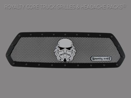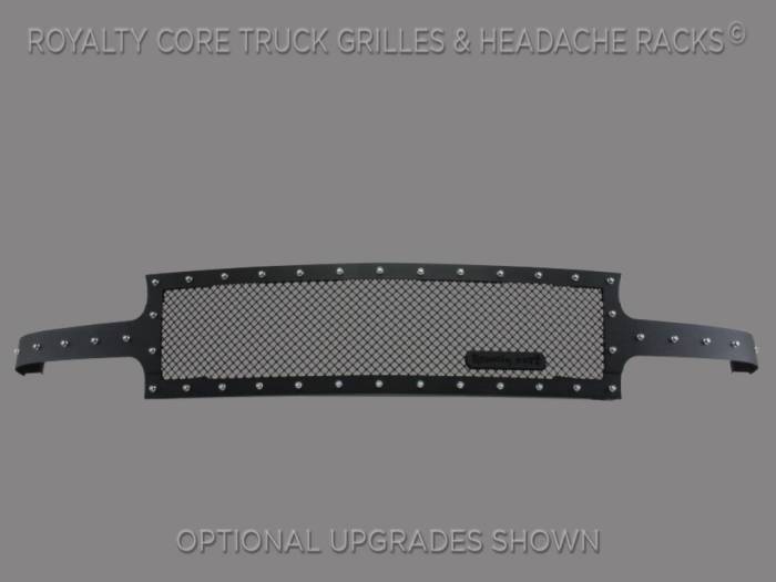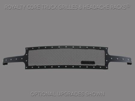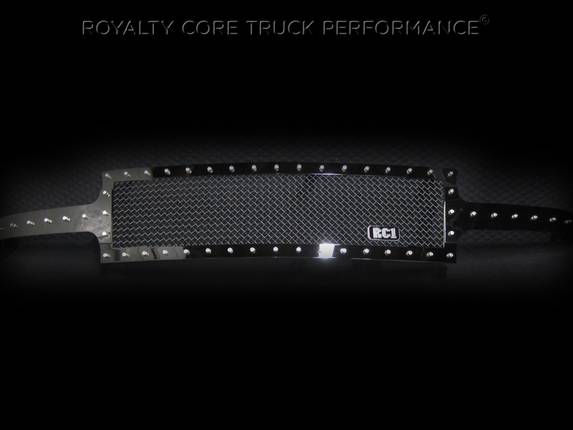 Royalty Core's proprietary corrosion resistant stainless technology creates the most durable grille on the planet. It's engineered to exploit the cleanest installation possible for your specific truck model. This Royalty Core grille is customized to best match your truck with military grade strength you can count on such as a 12 gauge stainless steel construction, optimal mounting brackets, CNC precision machined brackets, frame, and logos, hand fabricated, all gloss surfaces are buffed to a deep smooth mirrored finish, triple chrome plated T304 stainless studs around frame with star flange design, stainless super woven mesh, and absolutely no plastic. Royalty Core offers the industry's largest customized line of grilles and logos available.