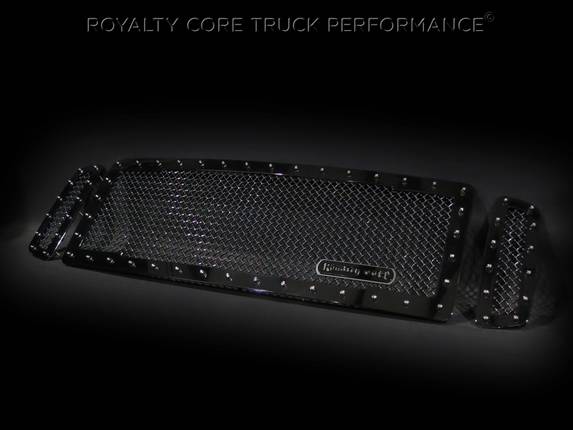 Royalty Core's proprietary corrosion resistant stainless technology creates the most durable grille on the planet. It's engineered to exploit the cleanest installation possible for your specific truck model. This Royalty Core grille is customized to best match your truck with military grade strength you can count on such as a 12 gauge stainless steel construction, optimal mounting brackets, CNC precision machined brackets, frame, and logos, hand fabricated, all gloss surfaces are buffed to a deep smooth mirrored finish, triple chrome plated T304 stainless studs around frame with star flange design, stainless super woven mesh, and absolutely no plastic. Royalty Core offers the industry's largest customized line of grilles and logos available.