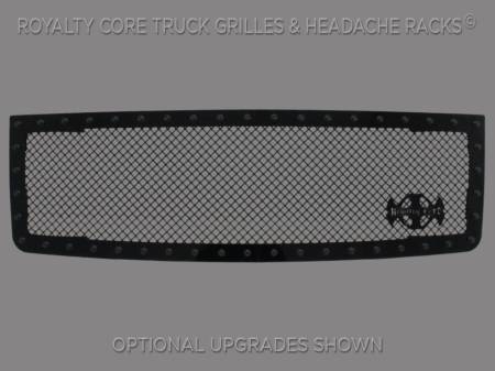 Royalty Core's proprietary corrosion resistant stainless technology creates the most durable grille on the planet. It's engineered to exploit the cleanest installation possible for your specific truck model. This Royalty Core grille is customized to best match your truck with military grade strength you can count on such as a 12 gauge stainless steel construction, optimal mounting brackets, CNC precision machined brackets, frame, and logos, hand fabricated, all gloss surfaces are buffed to a deep smooth mirrored finish, triple chrome plated T304 stainless studs around frame with star flange design, stainless super woven mesh, and absolutely no plastic. Royalty Core offers the industry's largest customized line of grilles and logos available.