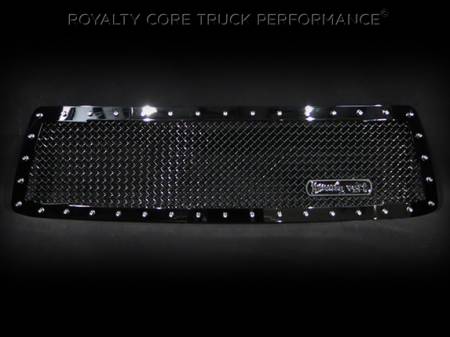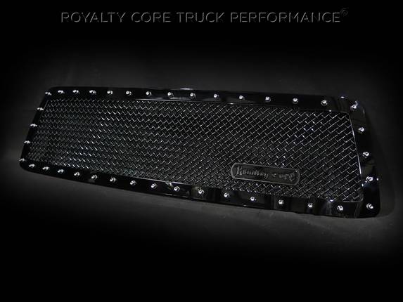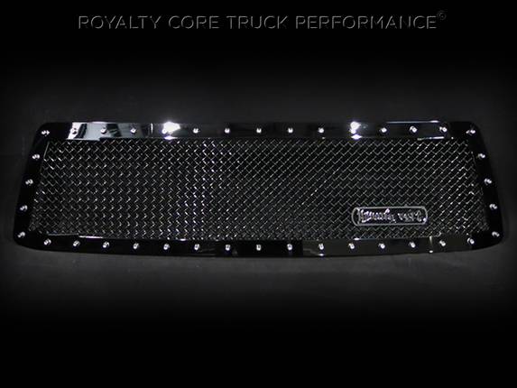 Royalty Core's proprietary corrosion resistant stainless technology creates the most durable grille on the planet. It's engineered to exploit the cleanest installation possible for your specific truck model. This Royalty Core grille is customized to best match your truck with military grade strength you can count on such as a 12 gauge stainless steel construction, optimal mounting brackets, CNC precision machined brackets, frame, and logos, hand fabricated, all gloss surfaces are buffed to a deep smooth mirrored finish, triple chrome plated T304 stainless studs around frame with star flange design, stainless super woven mesh, and absolutely no plastic. Royalty Core offers the industry's largest customized line of grilles and logos available.