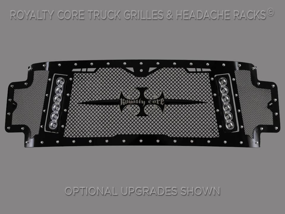 After years of rigorous planning Royalty Core's design team engineered their Explosive RCX grille integrating vertically positioned dual LED light bars with explosive lumen output. Extreme lines and twin mesh accents create the ultimate grille for your vehicle. This grille includes two insanely powerful Vision X 12" XMITTER double row LED light bars.You must login to post a review.
