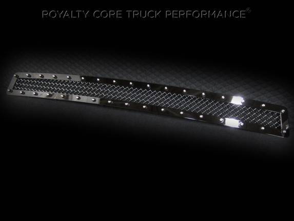 Royalty Core's proprietary corrosion resistant stainless technology creates the most durable grille on the planet. It's engineered to exploit the cleanest installation possible for your specific truck model. This Royalty Core grille is customized to best match your truck with military grade strength you can count on such as a 12 gauge stainless steel construction, optimal mounting brackets, CNC precision machined brackets, frame, and logos, hand fabricated, all gloss surfaces are buffed to a deep smooth mirrored finish, triple chrome plated T304 stainless studs around frame with star flange design, stainless super woven mesh, and absolutely no plastic. Royalty Core offers the industry's largest customized line of grilles and logos available.
