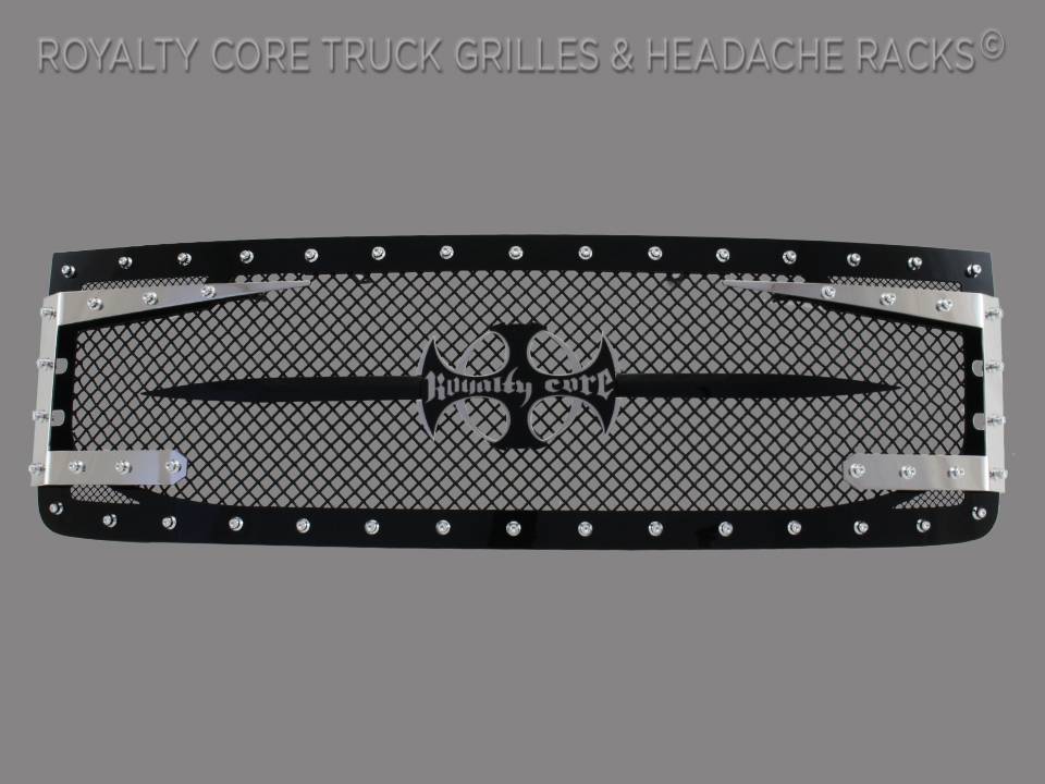 Royalty Core's proprietary corrosion resistant stainless technology creates the most durable grille on the planet. It's engineered to exploit the cleanest installation possible for your specific truck model. This Royalty Core grille is customized to best match your truck with military grade strength you can count on such as a 12 gauge stainless steel construction, optimal mounting brackets, CNC precision machined brackets, frame, and logos, hand fabricated, all gloss surfaces are buffed to a deep smooth mirrored finish, triple chrome plated T304 stainless studs around frame with star flange design, stainless super woven mesh, and absolutely no plastic. Royalty Core offers the industry's largest customized line of grilles and logos available.