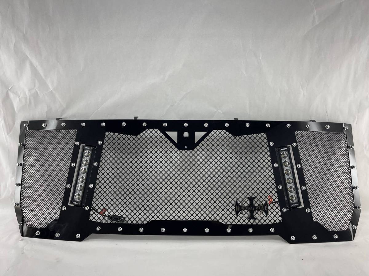 After years of rigorous planning Royalty Core's design team engineered their Explosive RCX grille integrating vertically positioned dual LED light bars with explosive lumen output. Extreme lines and twin mesh accents create the ultimate grille for your vehicle. This grille includes two insanely powerful Vision X 11.5"" light bars.