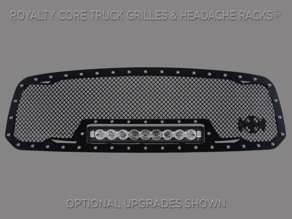 Royalty Core's proprietary corrosion resistant stainless technology creates the most durable grille on the planet. Absolutely every piece is 100% T304 stainless steel. It's engineered to exploit the cleanest installation possible for your specific truck model. This Royalty Core grille is customized to best match your truck with military grade strength you can count on such as a 12 gauge stainless steel construction, optimal mounting brackets, CNC precision machined brackets, frame, and logos, hand fabricated, all gloss surfaces are buffed to a deep smooth mirrored finish, triple chrome plated T304 stainless studs around frame with star flange design, stainless super woven mesh, and absolutely no plastic. Royalty Core offers the industry's largest customized line of grilles and logos available.